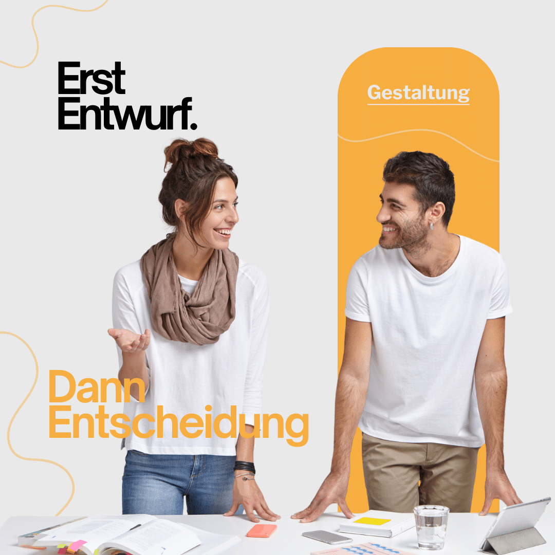 Jetzt nehmen Ihre Wünsche Form an: Wir gestalten erste Entwürfe, ordnen Inhalte und bereiten alles vor – egal ob für Ihre neue Website, den Online-Shop oder den Flyer.